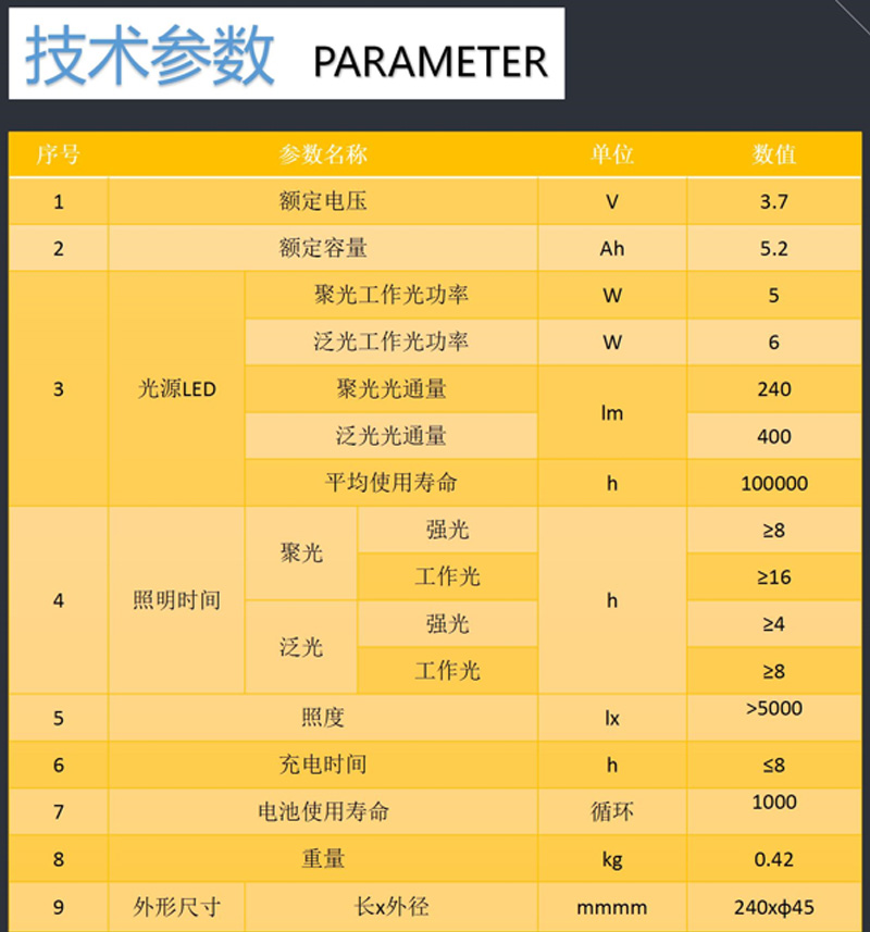 采用兩節(jié)高能無記憶18650鋰電池組,高能量密度、容量大達(dá)5000mah、經(jīng)濟環(huán)保無污染、可循環(huán)使用,良好的高低溫性能、壽命長、安全可靠,并帶有USB輸出充電功能。手電連續(xù)照明時長可達(dá)16小時以上。